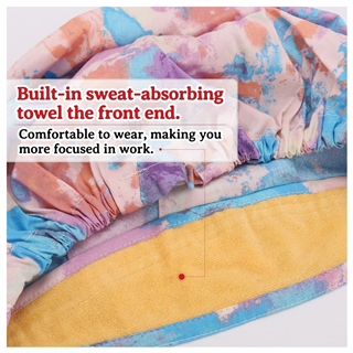4. Built-in sweatband across the front end.Compared with the traditional craft,the serging and hemming technology are also applied in making sweat band of our product in order to prevent your hair from being stained with cloth cuttings so that you will be more concentrated on your work when you wear it.