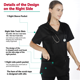 4. U-Shaped Work Card Hanging Hook Design: To make it more convenient for you during work, the scrub top features a U-shaped work card hanging hook on the left shoulder and on the side of the right pocket, tailored to accommodate your work habits.