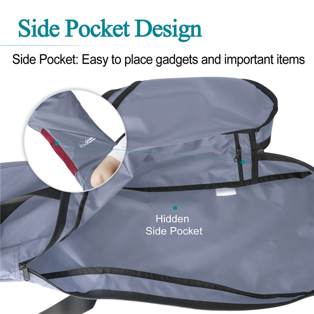 4. With 1 small hidden side pocket(Convenient for storing some small accessories). Bag dimensions are( 9.4"Upper Width、3.9"Lower Width) x 51"H x 3.9"D.