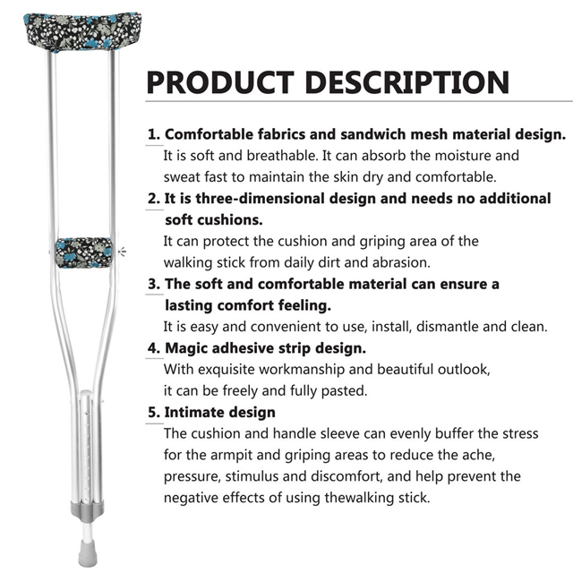 5. The cushion and handle sleeve can evenly buffer the stress for the armpit and griping areas to reduce the ache, pressure, stimulus and discomfort, and help prevent the negative effects of using thewalking stick.