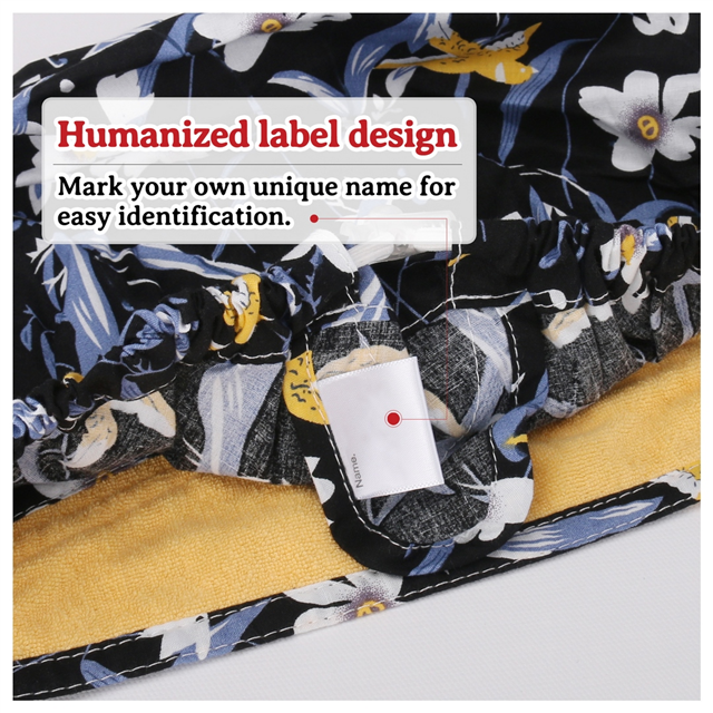 4. Built-in sweatband across the front end.Compared with the traditional craft,the serging and hemming technology are also applied in making sweat band of our product in order to prevent your hair from being stained with cloth cuttings so that you will be more concentrated on your work when you wear it.
