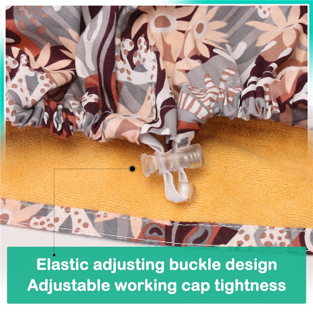4. Built-in sweatband across the front end.Compared with the traditional craft,the serging and hemming technology are also applied in making sweat band of our product in order to prevent your hair from being stained with cloth cuttings so that you will be more concentrated on your work when you wear it.