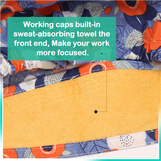 4. Built-in sweatband across the front end.Compared with the traditional craft,the serging and hemming technology are also applied in making sweat band of our product in order to prevent your hair from being stained with cloth cuttings so that you will be more concentrated on your work when you wear it.