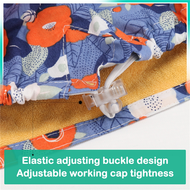 3. The triangle cutting is designed in the back of the cap so that your head will be more closely and your hair will not loose, it is so comfortable,beautiful and clean thatwillmake you more concentrated on your work. Furthermore,compared with traditional craft,the serging and hemming technology used in making the triangle cutting of our product can stop cloth cuttings falling everywhere.